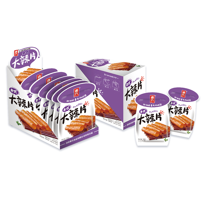 2021-09-17源氏大辣片 ,開袋噴香、口感辣爽、麻辣適中,天然、綠色、健康、色香味俱全,濃烈甜辣味俘虜眾人口舌,依據(jù)麻辣美食特性結合現(xiàn)代生產(chǎn)工藝,創(chuàng)造出讓消費者吃的健康吃的放心的美味食品。 作為源…