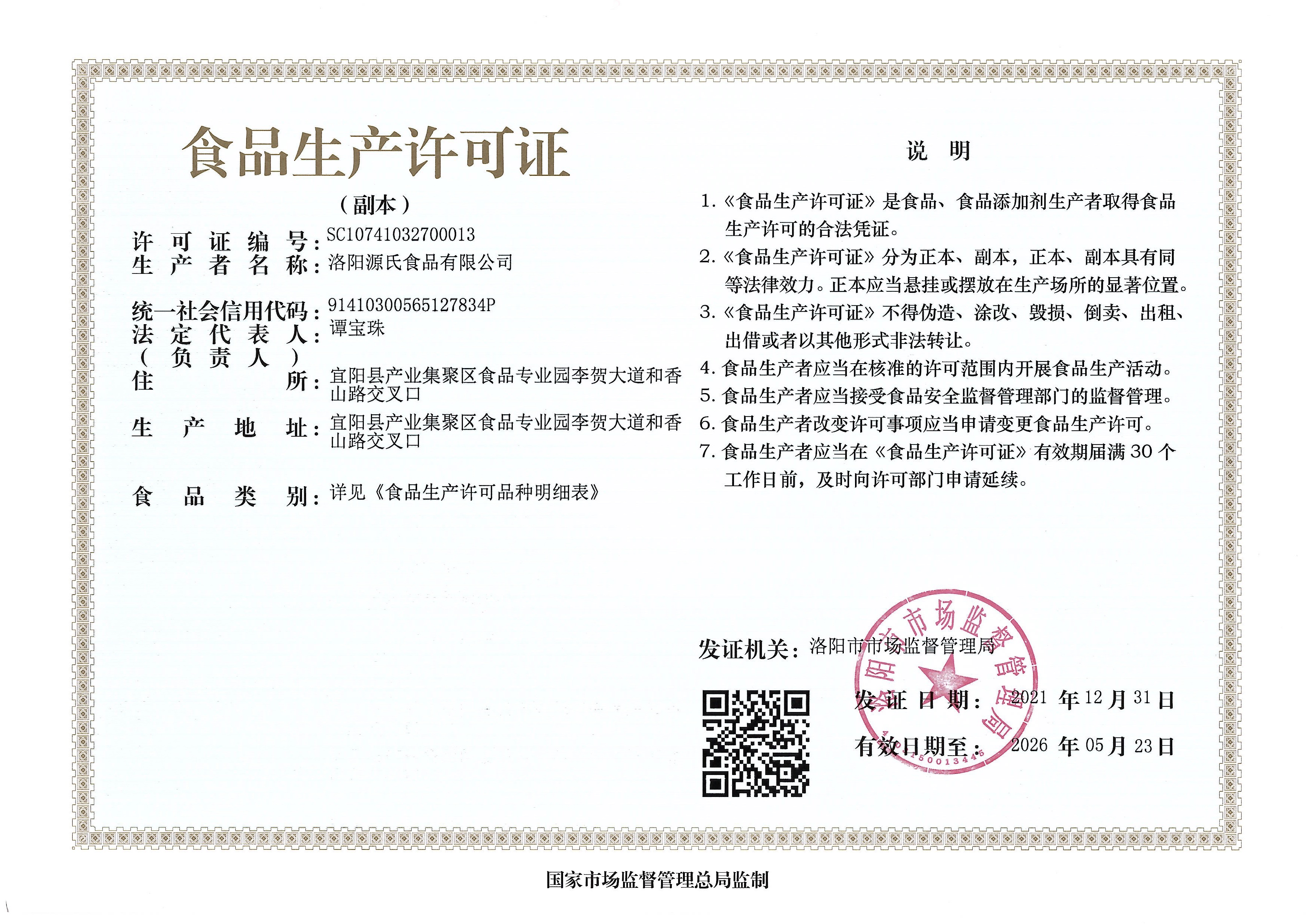 源氏食品生產(chǎn)許可證及細節(jié)列表